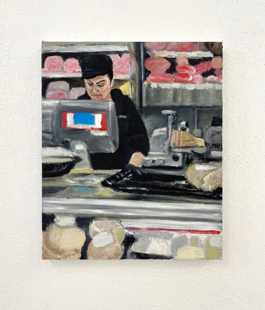 Banco dei salumi, 2023, oil on linen, 25×30 cm
