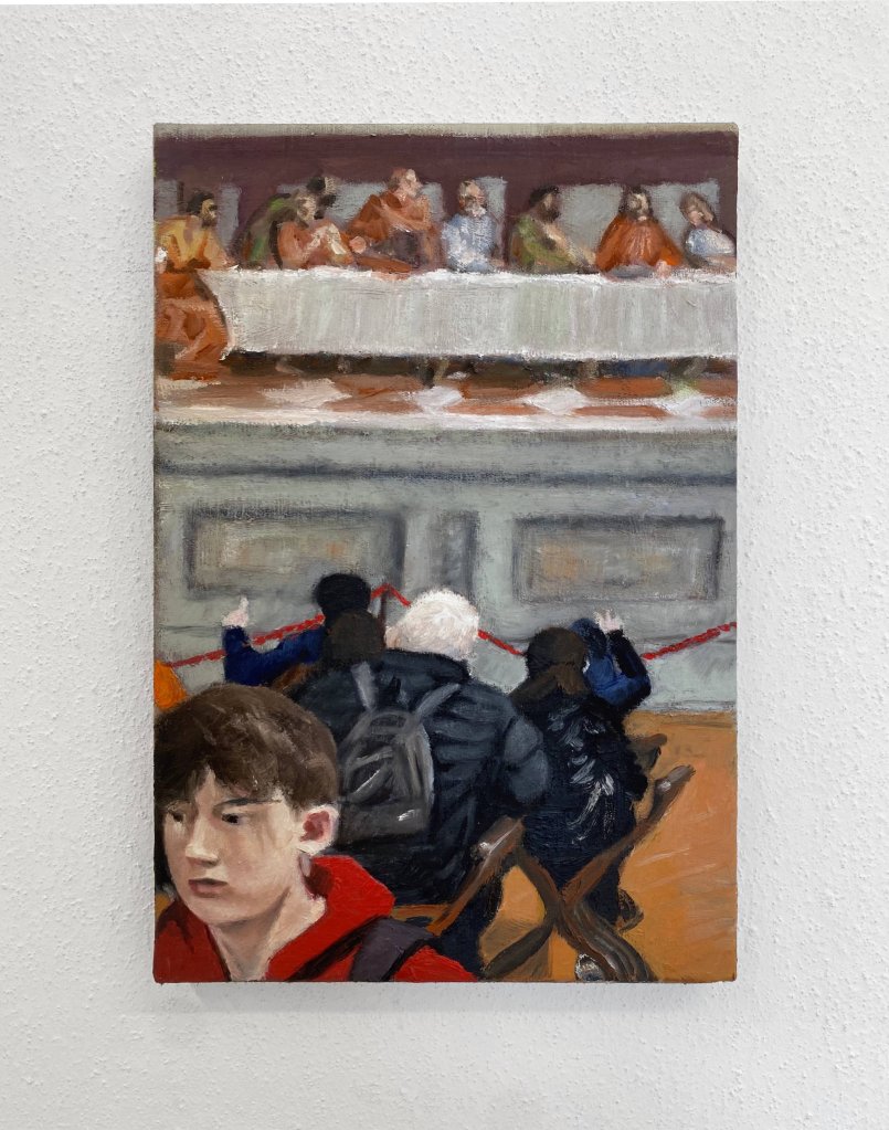 Andrea del Sarto e il suo pubblico, 2024, oil on linen, 20×30 cm